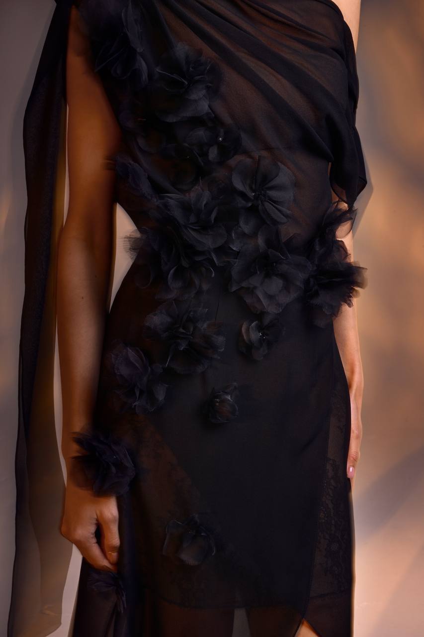 Шелковый шифон, кружево шантильи и цветы ручной работы. Незабываемый круизный силуэт.
