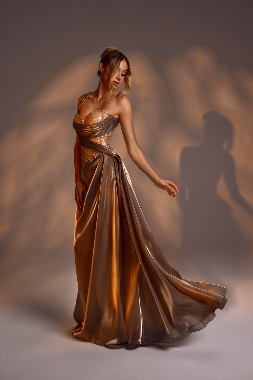 Золотой поток. Силуэт, где корсет — якорь, а юбка — движение времени.